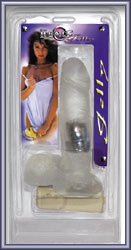 Jelly-Clear-Dong Herrlich praller Vibrator aus transparentem Jelly-Material! Was Sie mit dieser gefühlsechten Penis-Nachbildung alles anstellen können, ist sagenhaft! Pralle Eichel und naturgetreue Äderung laden zu geilen Sex-Spielen ein. Der Vibrator ist total biegsam, hat einen Hoden-Stand-/Saugfuß, und die Vibration läßt sich bequem mit dem Einhand-Stufenlos-Reizregler einstellen. Ca. 17 cm lang, Ø ca. 4 cm.