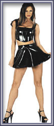Verspielt-sexy in weit ausgestellter Form. Hinten mit Druckknopf- und Reißverschluß. Schwarz. 50% Polyester, 50% Polyurethan.