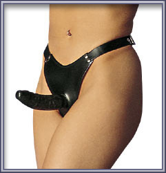 Dick Double Verstellbarer Slip mit Naturlook-Latex-Penis außen (14 cm lang, Durchmesser: 3 cm) und glattem Latex-Penis innen (12 cm lang, Durchmesser: 3 cm).